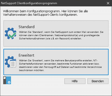 - starten Sie das NetSupport Clientkonfigurationsprogramm im Modus Erweitert