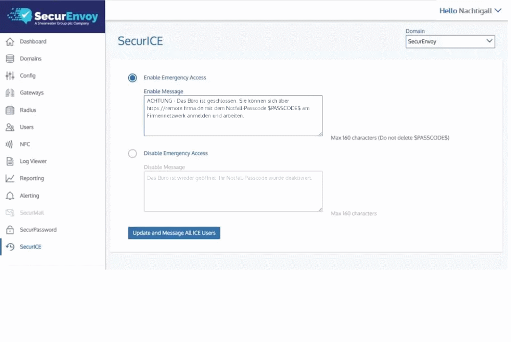 Sie haben dann im Anschluss in SecurAccess Ihre Informationen verfügbar zum Versand der SecurICE Notfallaktivierung bzw. -deaktivierung.