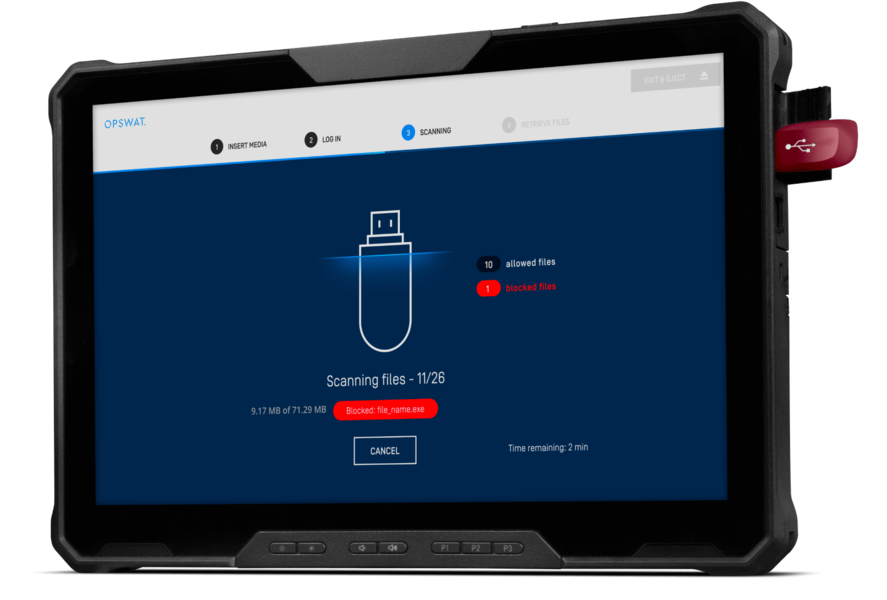 Die HighEnd Datenschleuse von OPSWAT scannt mobile Datenträger auf Bedrohungen und Schadsoftware.