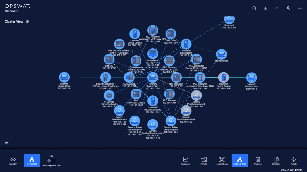 Cybersicherheit ist weder die Kernaufgabe noch die Kernkompetenz in Produktionsumgebungen. Umso wichtiger ist es, die Assets und die damit verbundenen Risiken und Schwachstellen übersichtlich in einer Lösung kenntlich zu machen. Mit MetaDefender OT Security erkennen Sie in Echtzeit den Betriebs- und Sicherheitsstatus aller OT Assets und sehen in einer einzigen Übersicht Ihre neuronale Netzwerk-Landkarte.