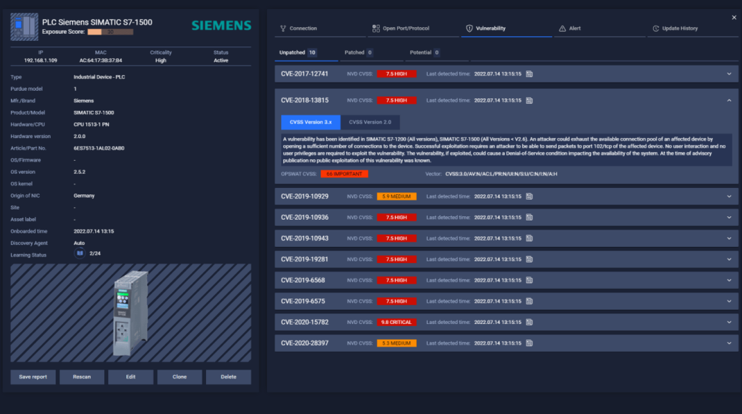 Durch die Erfahrung von OPSWAT im Bereich OT-Sicherheit bzw. industrielle Cybersicherheit (industrial cybersecurity) und Gerätespezifikationen werden Risiken und Schwachstellen wie z.B. ungepatchte CVEs im Zusammenhang mit ICS-Assets gefunden.