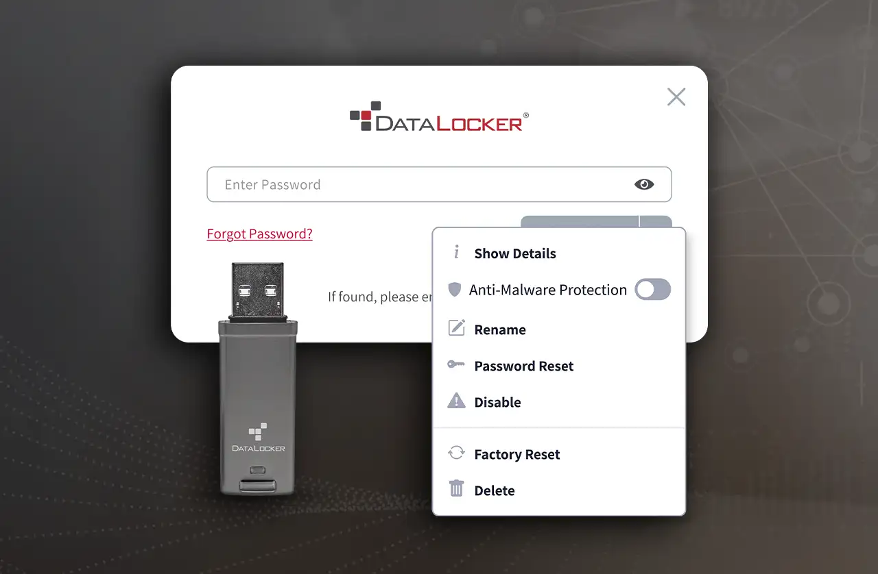 - Remote-Kill oder Remote-Lock von verlorenen oder gestohlenen USB-Sticks